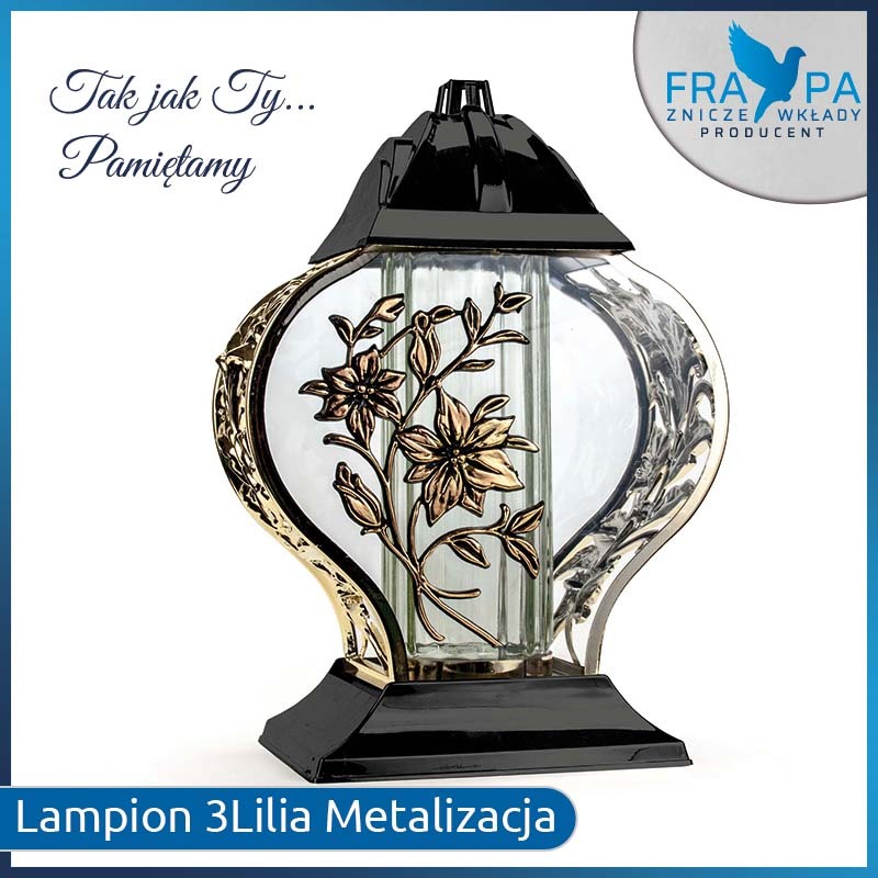 Subtelne, metalizowane zdobienia w kształcie kwiatów wprowadzają nutę delikatności, a kontrast czerni i złota podkreśla jego luksusowy charakter. Transparentna konstrukcja pięknie eksponuje światło, tworząc spokojną, refleksyjną atmosferę. To model, który łączy estetykę z głębokim znaczeniem, będąc eleganckim symbolem pamięci.