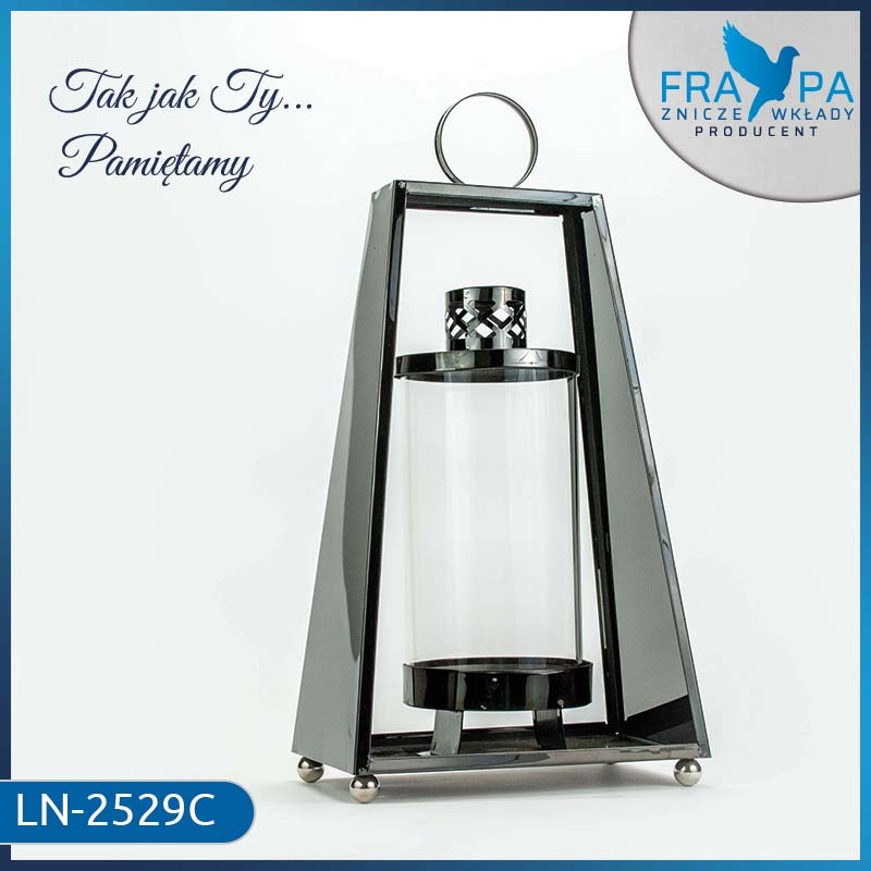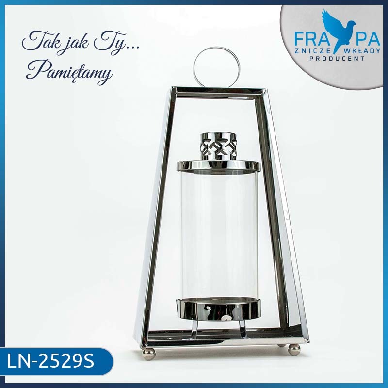 Smukła, geometryczna konstrukcja oraz subtelny połysk metalu nadają mu wyjątkowo luksusowy charakter. Przeszklone wnętrze pięknie eksponuje światło świecy, tworząc ciepłą i nastrojową atmosferę zarówno we wnętrzu, jak i w miejscu pamięci. Ten lampion ozdobny do domu lub na cmentarz to doskonały wybór dla osób ceniących styl, jakość i ponadczasową estetykę.